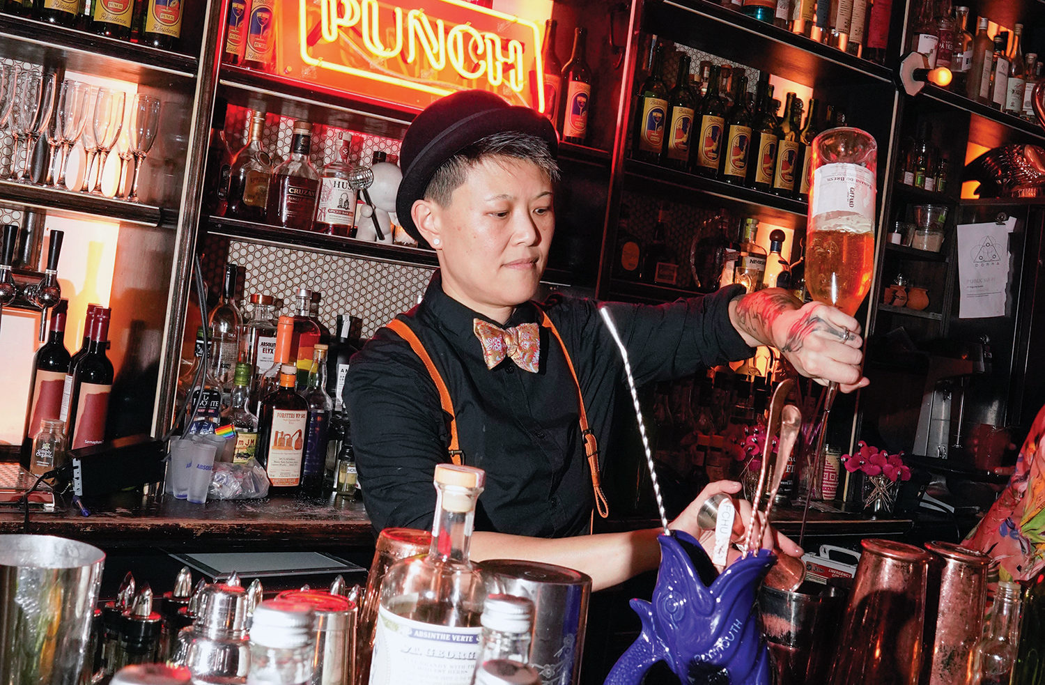 For 17 years, Fanny Chu worked in the medical field, a path that she found stifled her personal life. Now, as a bartender, going to work makes her feel “like I’m ‘going out’ while making money,” she says. Chu, former Head Bartender of Donna Cocktail Club in Brooklyn and host of Ketel One’s “Marvelous Mondays,” a feature of Portland Cocktail Week, uses her platform as a bartender and as a queer Asian to make lasting impacts on the hospitality industry. “I get to have a voice in the bartending community and make an impact for people like us,” she tells GO. “I strongly believe with the given political climate we are facing, it’s really important to create a safe space for everyone.” Her work has been acknowledged by The New York Times, Wine Enthusiast, Bar Business, Departures, and Edge Media Network. She was also PUNCH Drink’s Bartender in Residence for the month of July 2019. Her most recent venture, Makers of Marvelous, shines a spotlight on members of the hospitality industry who have suffered during COVID-19. Ultimately, she chose her current field not just because it was fun, but because it allowed her to make a tangible difference. “I also dreamt of creating an inclusive and safe space for my fellow LGBTQIA folx,” she says. “When I came out, there weren’t many places that were like that for me. I always felt like I couldn’t be myself without feeling threatened.” Now, thanks to people like Chu, the rest of us might feel more safe going out, too. —NT
