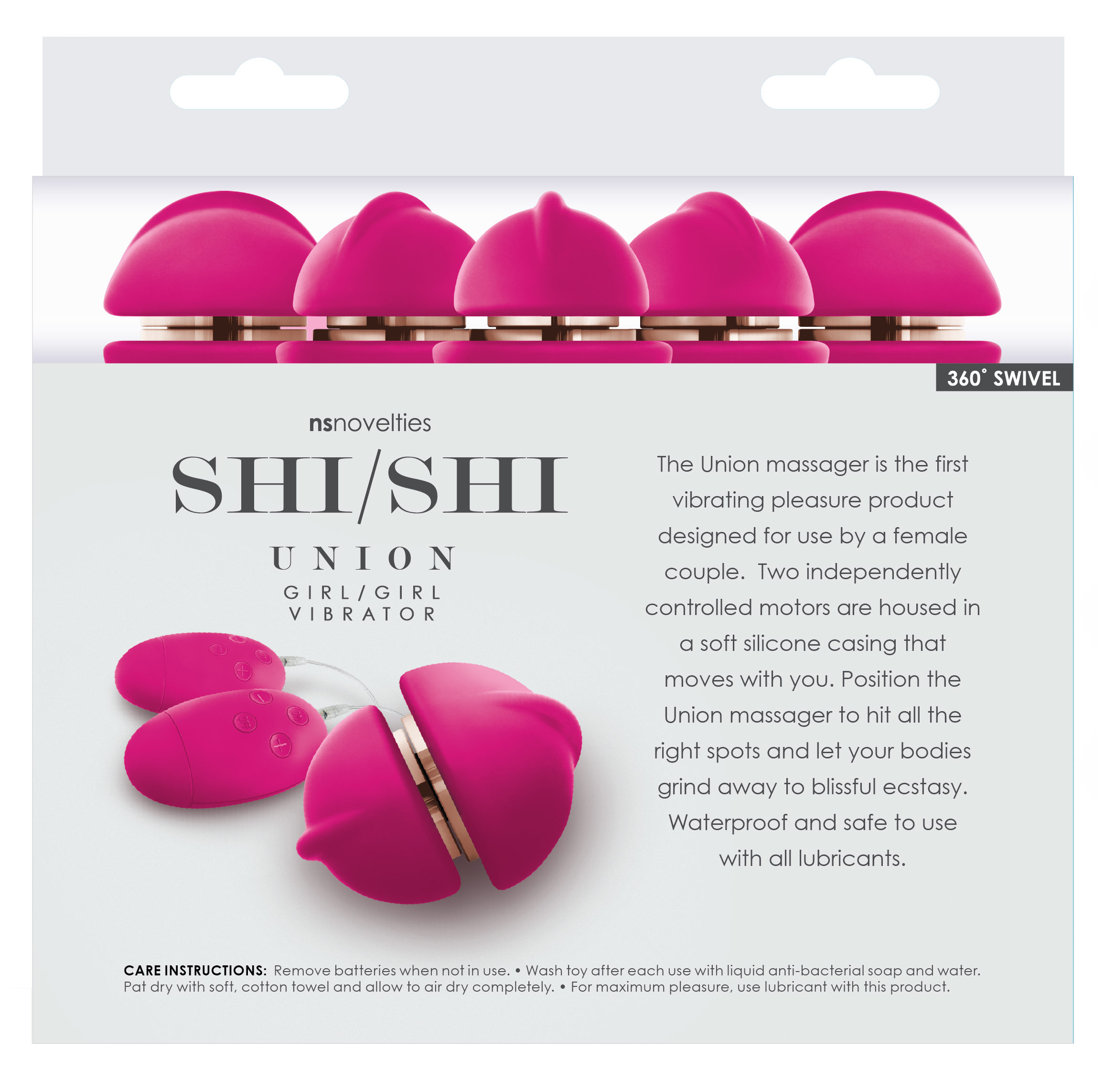 GA: Yes! That’s part of what I really wanted to include in the design. The Shi/Shi Union has dual controllers so that if one woman wants a hard vibration, she can and if the other woman wants something a bit more subtle or not at all, she also has that choice.