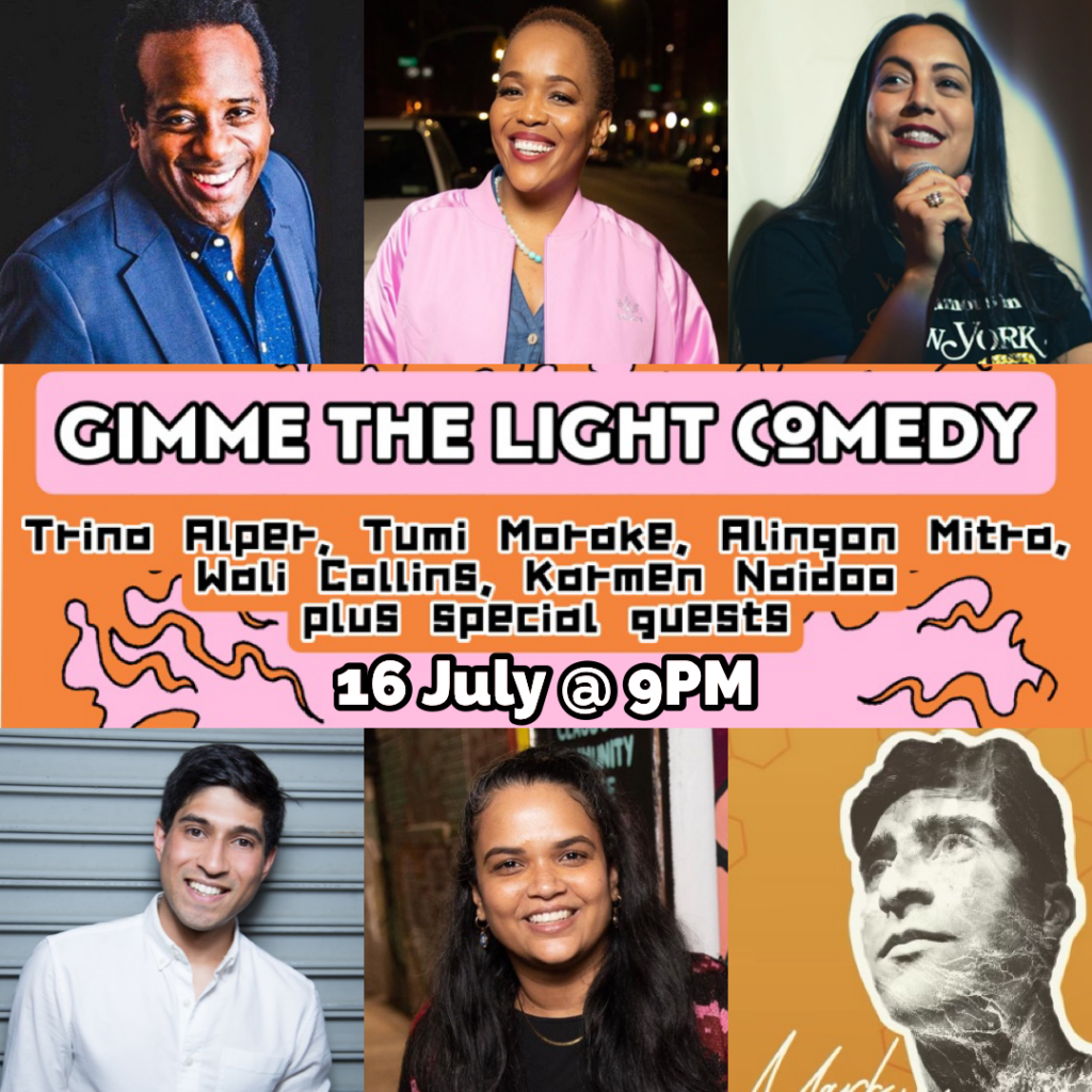 Gimme the Light is a live showcase of comedy and good vibes that passes the light to underrepresented, BIPOC & LGBTQIA+ comedians and artists that are breaking barriers with uproarious anecdotes.