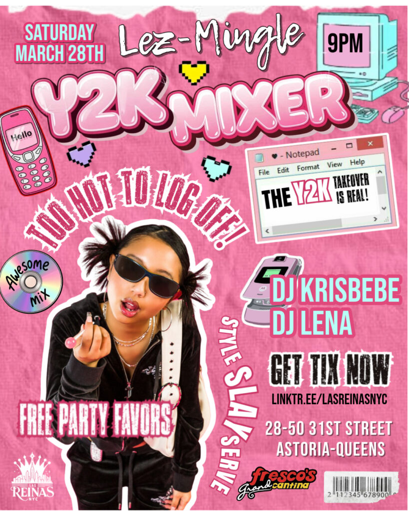 We’re throwing it all the way back to the early 2000s—think flip phones, glossy lips, low-rise vibes, and iconic pop energy. Whether you lived through Y2K or just love the aesthetic, this is your chance to mix, mingle, and dance the night away in a space centered on queer women, femmes, and friends.