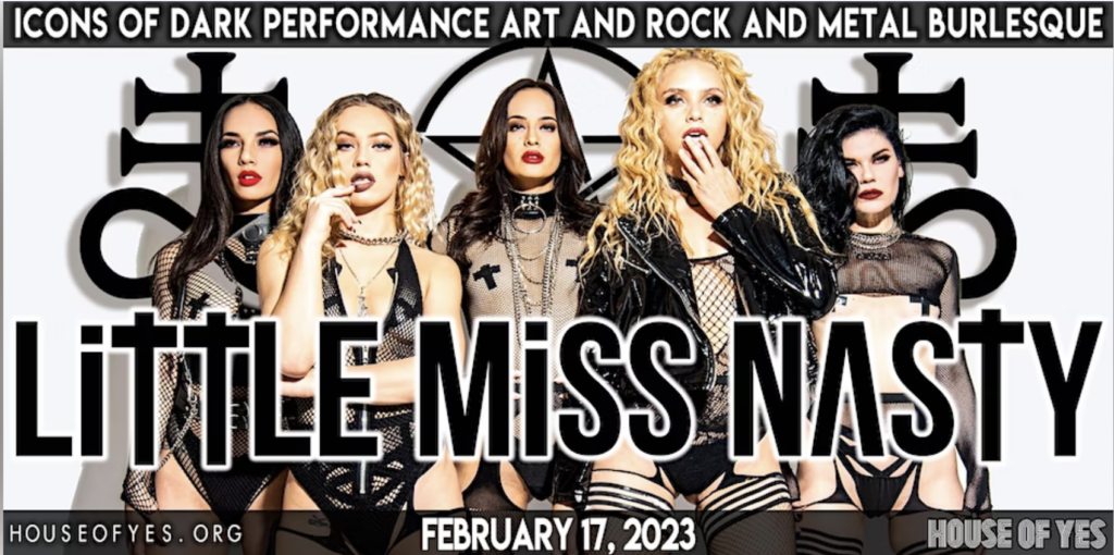 Prepare for an empowering and sexually charged evening “off the leash” with LA and Las Vegas’ most popular dark performance art and high energy dance show Little Miss Nasty. The LMN show is beautiful and seductive – an electrifying, professionally choreographed production featuring some of the entertainment industry’s best dancers, aerialists, vocalists and contortionists, complete with over-the-top video visuals and blazingly cool music.