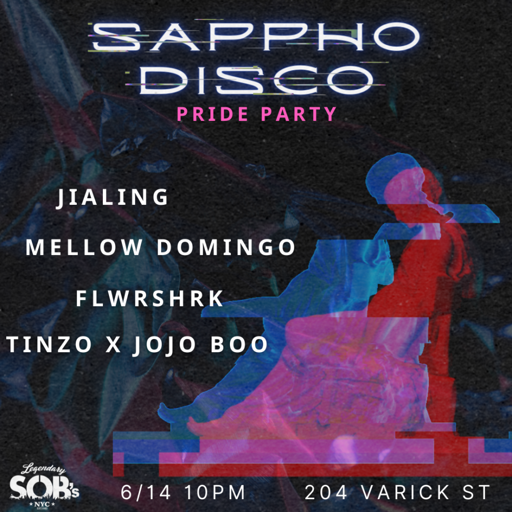 Celebrate Pride with Sappho Disco, a party for the girl-gays and theys! Club beats and gay anthems spun by JIALING, Mellow Domingo, FLWRSHRK, Tinzo, and JoJo Boo! Must be 21 or over.