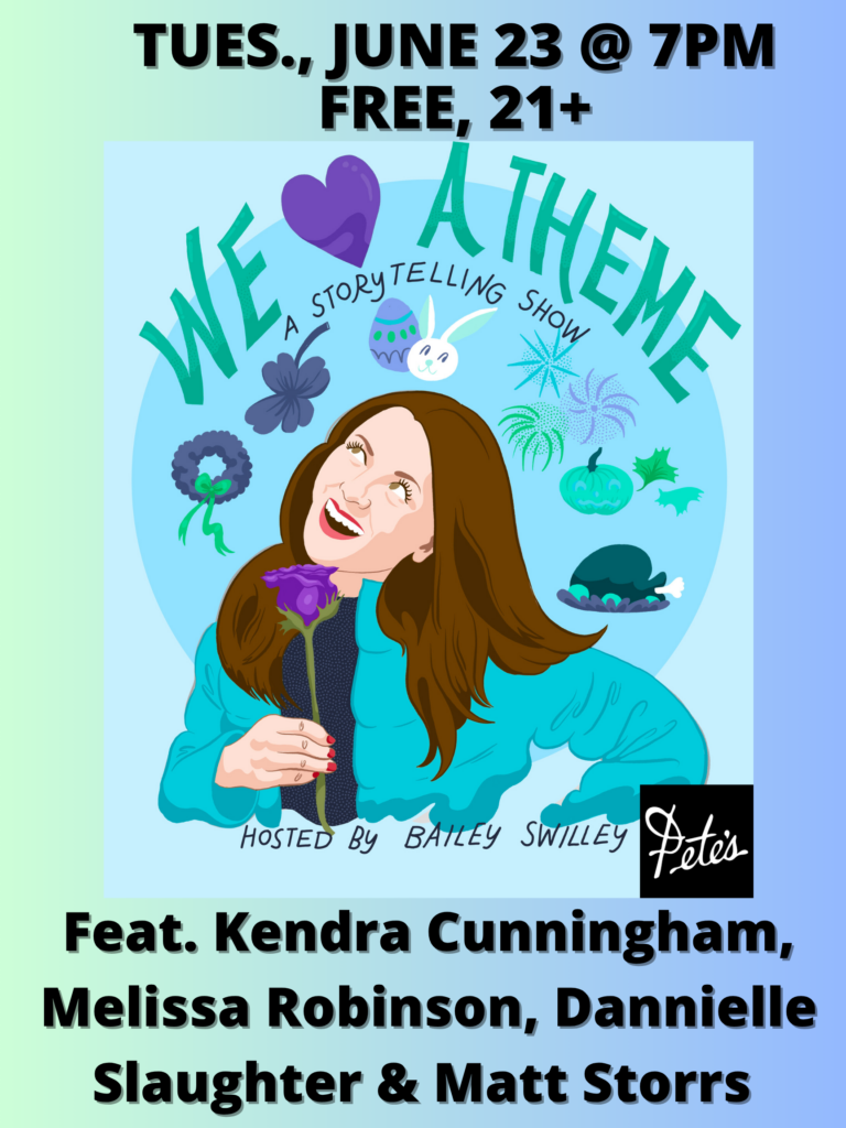 Bailey Swilley presents We Love a Theme: A Storytelling Show. This month’s theme? I LOVE NEW YORK. Don’t miss funny, heart-warming, and cringe tales from performers Kendra Cunningham, Melissa Robinson, Dannielle Slaughter, and Matt Storrs.