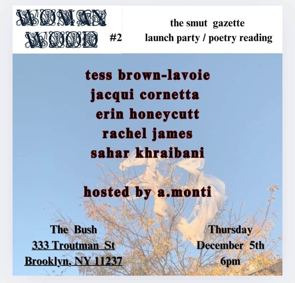 Itβs Winter, itβs cold, itβs time for WOMANWOOD: THE SMUT GAZETTE! π₯The second issue will be fresh off the printers and we are launching it in New York with a mouth-watering line-up of poets at our new favorite dyke bar, The Bush @bushdykebar