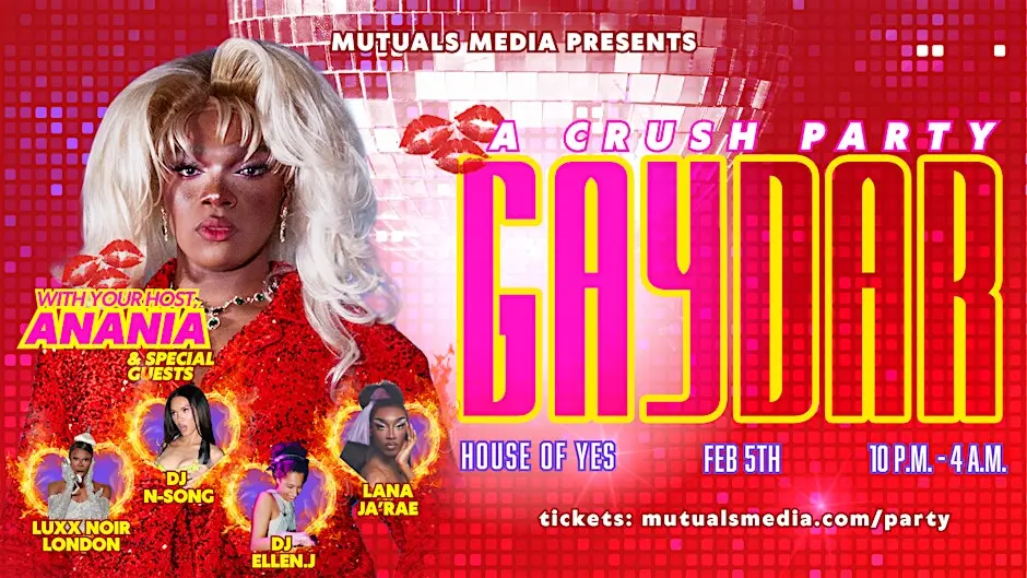 Feb 5 GAYDAR VALENTINES: A Crush Party 10:00 pm House of Yes 2 Wyckoff Ave, Brooklyn Event Details Get Directions