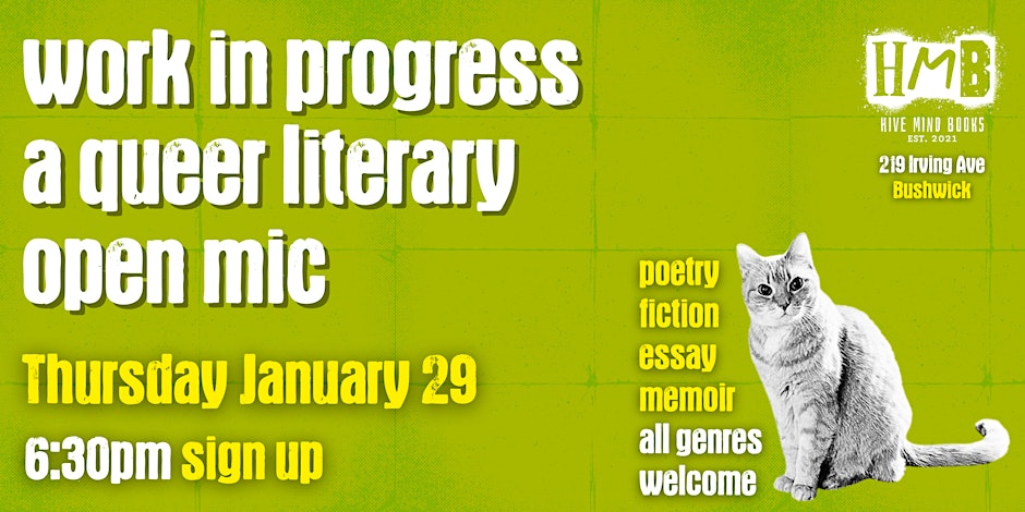 Hive Mind Books 219 Irving Avenue, Brooklyn, NY, United StatesAn hour of quiet reading in a cozy queer bookstore. Read for an hour, chat for half an hour. $1 off drinks. 10% off books. Do you wish you had more time to read? BYOB (bring your own book) to Hive Mind Books in Bushwick for an hour of quiet reading time in our cozy […]