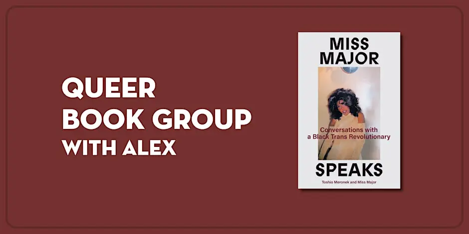 Hops Hill at Atlantic 533 Atlantic Avenue, Brooklyn, NY, United StatesOur Queer Book Group meets monthly to discuss contemporary fiction and nonfiction titles that relate to queer identity and more. Queer Book Group with Alex Discusses Miss Major Speaks: Conversations with a Black Trans Revolutionary by Miss Major Griffin-Gracy and Toshio Meronek Led by former Greenlight bookseller Alex, our Queer Book Group meets monthly to […]