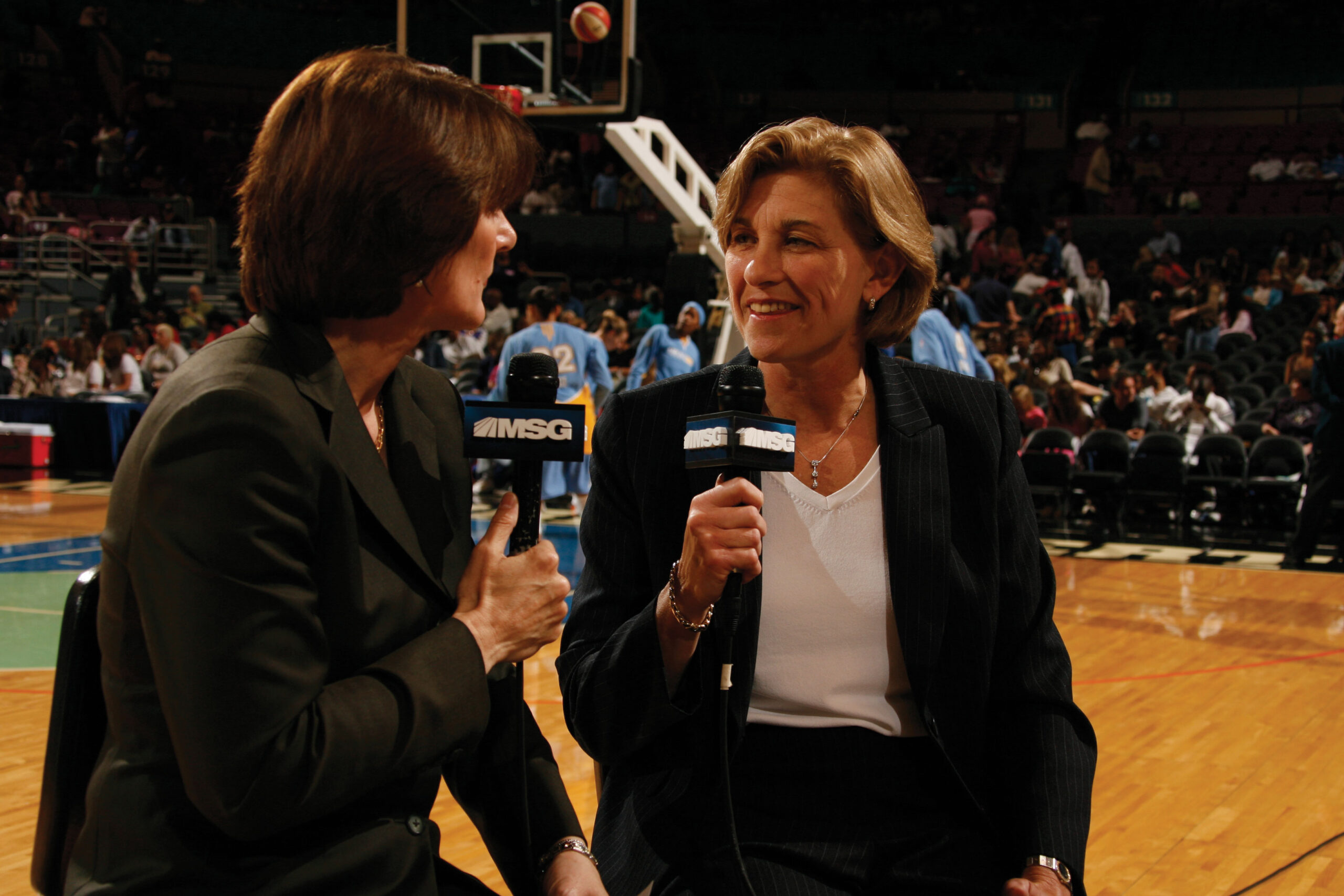 The Liberty’s President and General Manager, basketball Hall of Famer Carol “Blaze”Blazejowski and V.P. for Marketing and Communications Amy Scheer are both out lesbians, and are certainly aware of their status as role models, both as women in pro sports and as gay women. Success, for them, is good attendance and a winning team.